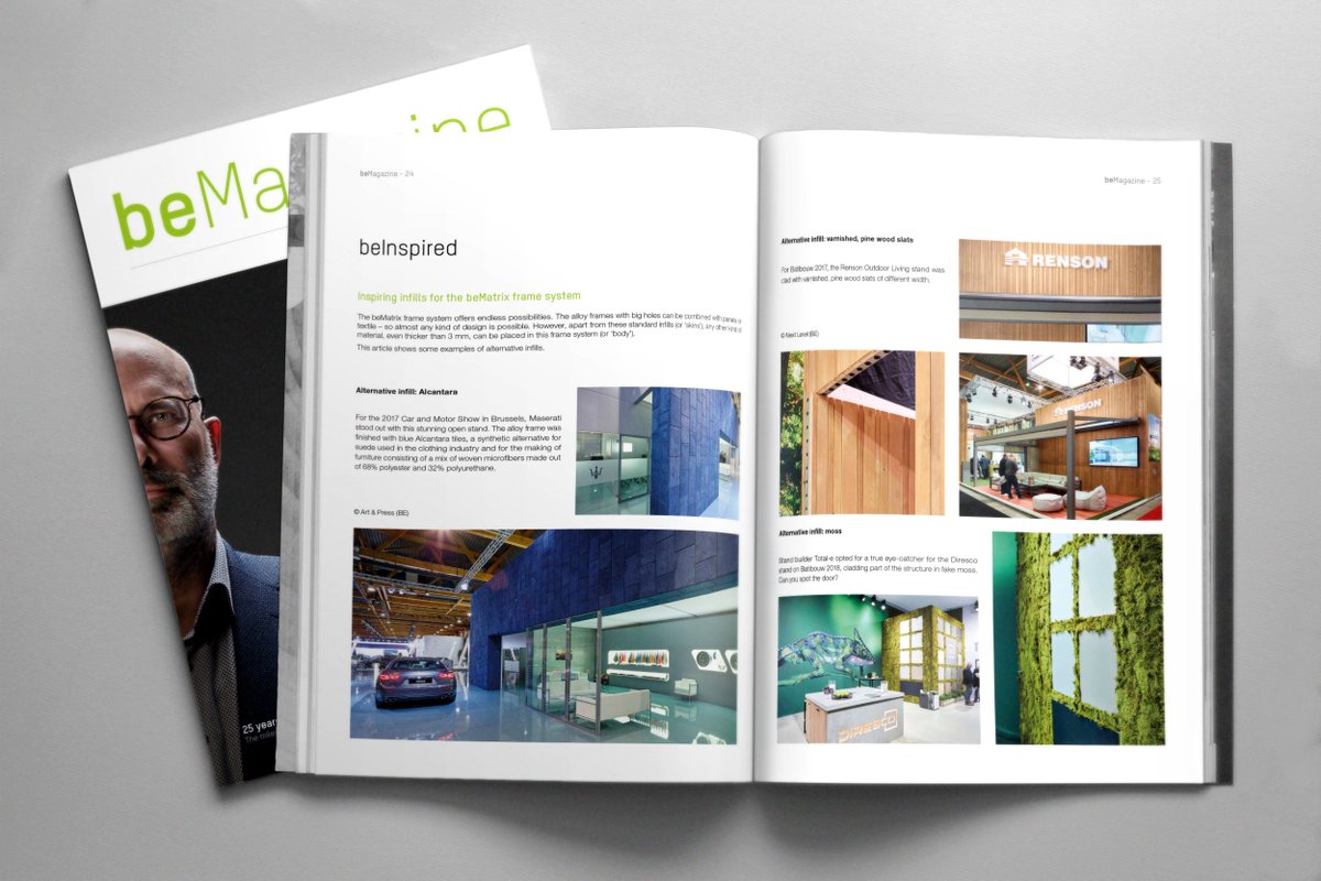 Summary In dit tweejaarlijkse inspirerende tijdschrift worden topics rond innovatie en lifestyle, tips & tricks en een unieke kijk achter de kaders van beMatrix gecombineerd om u een beter inzicht in hun (standenbouw)wereld te geven.Editie 1: https://issuu.com/bematrix/docs/bemagazine_01-2018_nl_webEditie 2: https://issuu.com/bematrix/docs/bemagazine_02_nl_webEditie 3: https://issuu.com/bematrix/docs/bemagazine_ed3_nl_web PROJECT DETAILS CLIENT BeMatrix Date 2018 CATEGORY Print, Branding